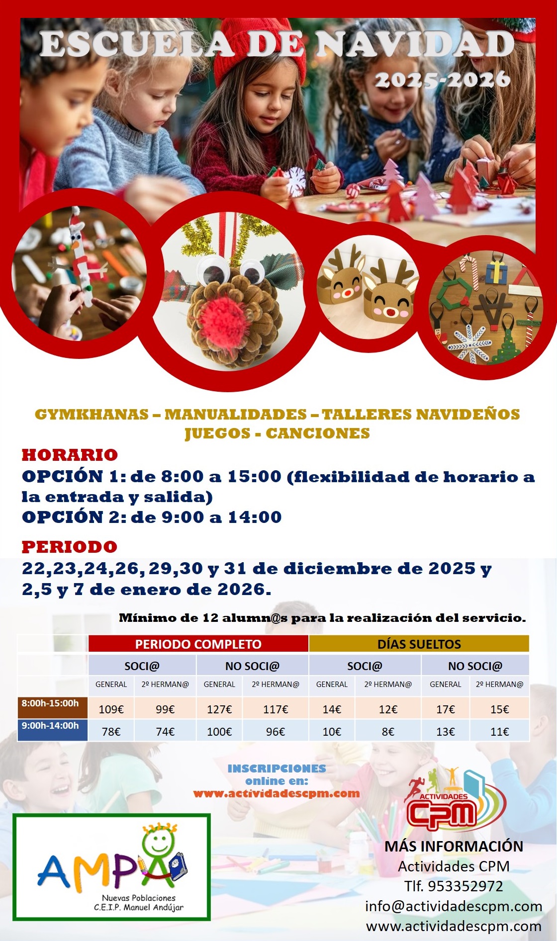 Escuela de Navidad 2025-2026. AMPA Nuevas Poblaciones CEIP Manuel Andújar