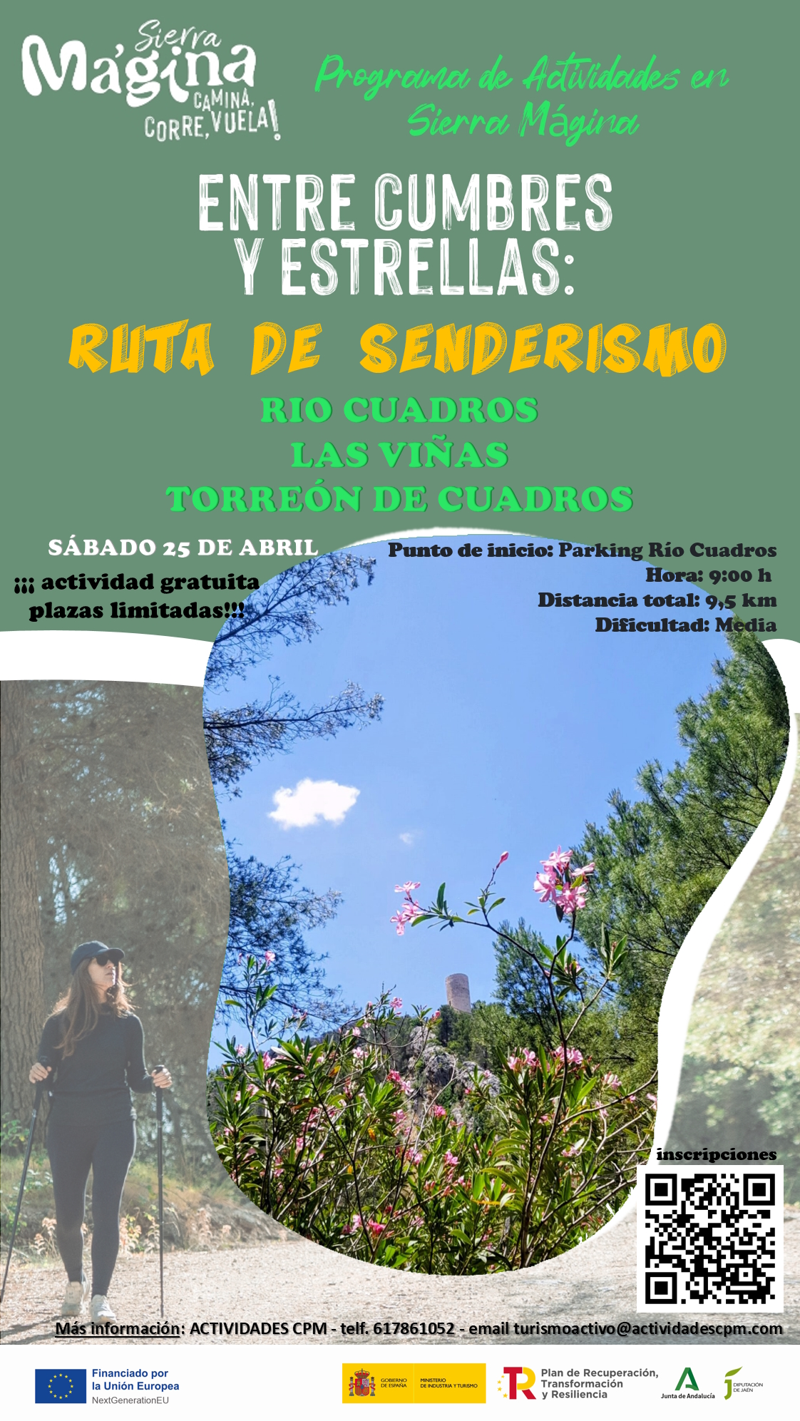 El itinerario de Las Viñas, nos permitirá conocer el lado norte de Sierra Mágina, adentrándonos por la ribera de un río y su nacimiento, que atesora una de las más importantes masas naturales de adelfa de la península, sauces llorones, higueras y otras especies propias del entorno. En nuestro ascenso encontraremos de forma abundante a la cornicabra, con una población muy importante en el Monte Carluco. De manera intermitente, es posible tener como referencia la torre vigía de Cuadros, rastros del pasado histórico de las tierras de Mágina.